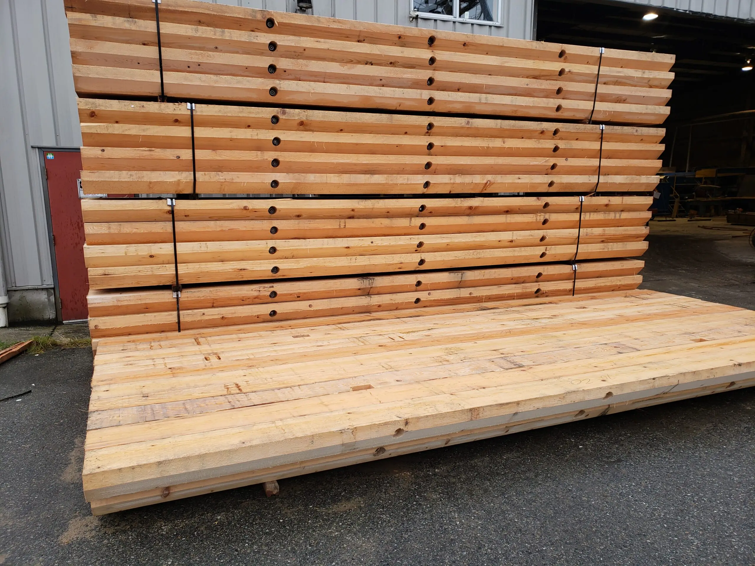 These Rail Crossing Panels are built specifically to fit between standard Canadian Rails and provide a quick deployment crossing for heavy equipment and traffic. A small crane can place and some lag bolts and ready to go. These are 7″ thick x 50″ wide, allowing for rail wheel clearance. We are also building narrow panels for the road side (the outer side).
