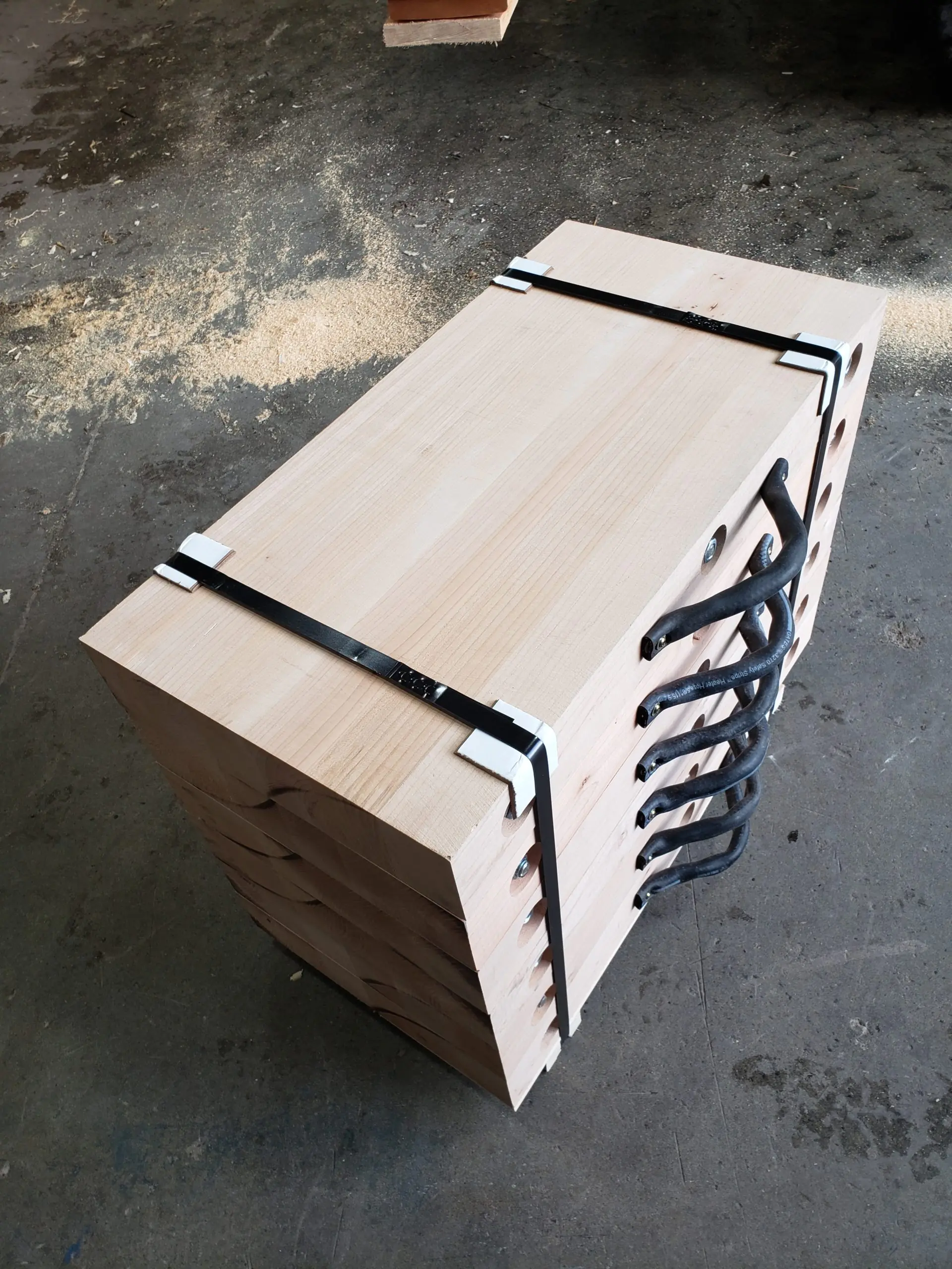 Check out these 4″ x 16″ x 32″ Pacific Coast Maple Hardwood Jack Blocks. Complete with suitcase handles (but stronger). These will be used in a Rail Car shop where they do repair work. The Jack Blocks go between the steel jacks and the steel car structural parts and stop the steel from “sliding”. Get your Hardwood Suitcase here!