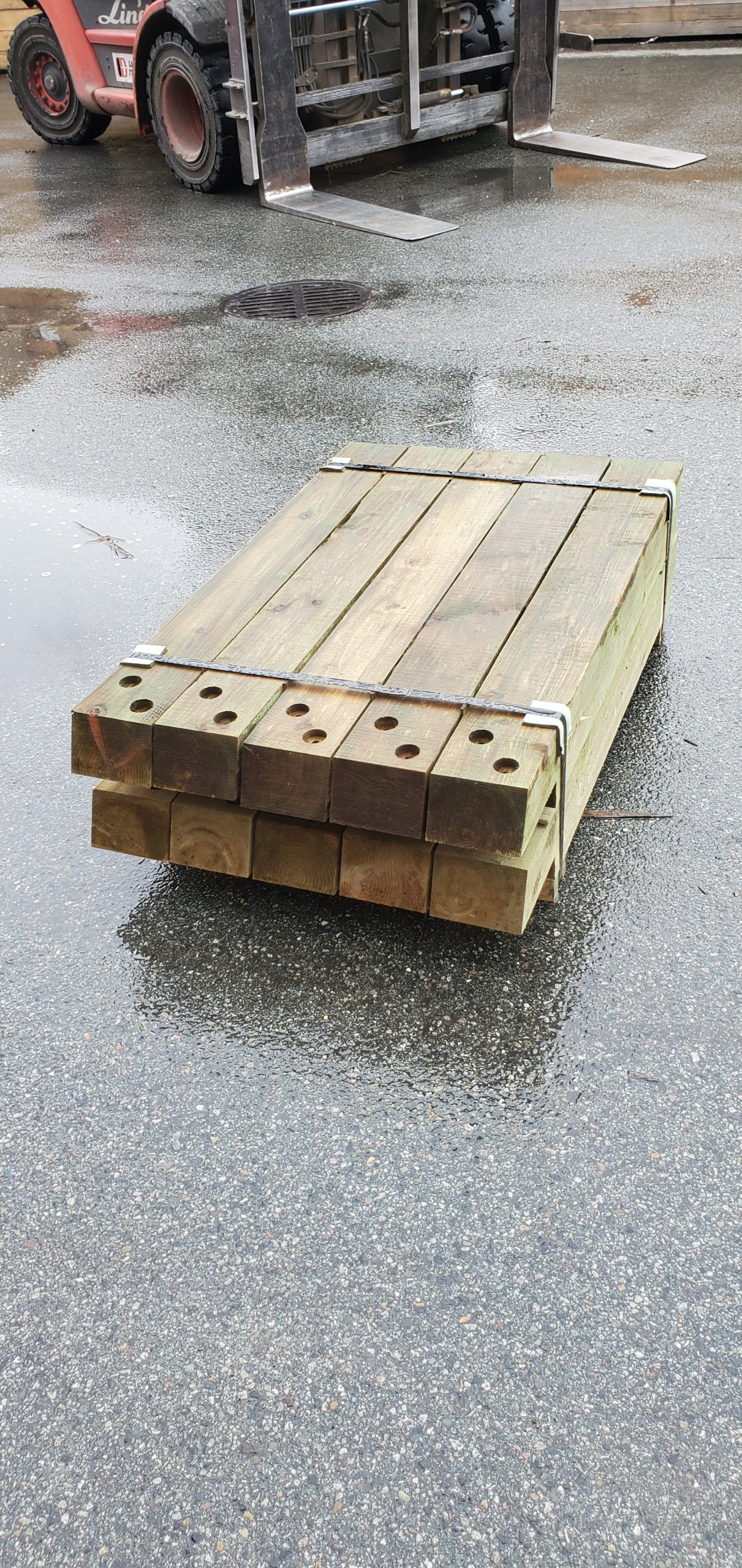 Rated at 5000kg this 26′ long bridge is built narrow so no motor vehicles can drive on to it. It is 7′ wide and has a 42″ high handrail and spans a full 24′. Built with treated Douglas Fir #1 and btr material it will last many years. This is being installed in a park in BC, Canada. It comes with the deck fully assembled ready to install and the handrail is supplied in a kit form. The handrail takes less than 4 hours to assemble. All hardware is included.