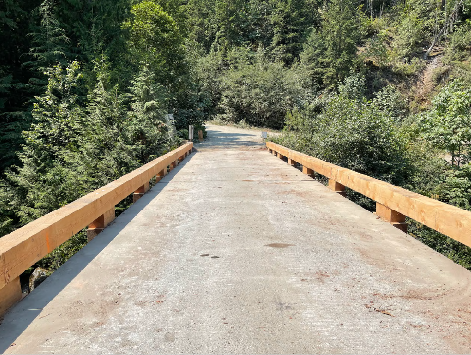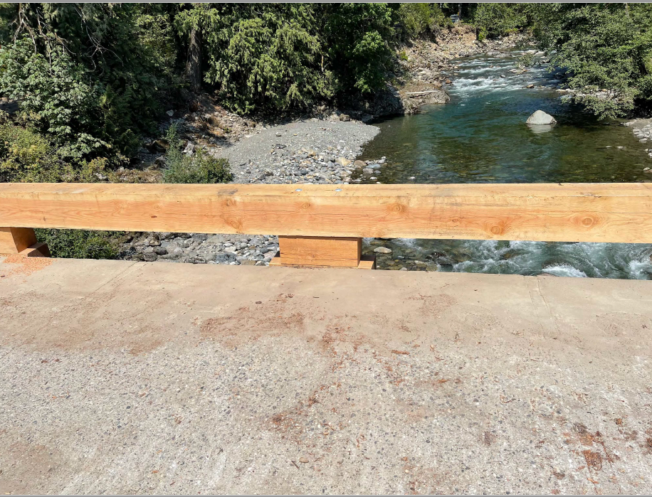 We pre-cut Douglas Fir Timber Parts for this concrete bridge re and re on the curbs. These bridges have pre-installed rods sticking out of the sides embedded in cement. We precut the bottom risers to attach to the bridge and then the top risers to attach on top. The timber curbs (12″ x 12″) were pre-cut to exact lengths so the install would go well on site. The project went smooth! Pre drilling really helped the crew.